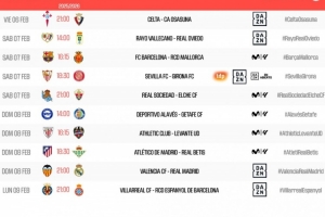 體育資訊1月20日訊 西甲官方公布了第23輪比賽的開球時(shí)間。2月7日23點(diǎn)15分巴薩vs馬洛卡、2月9日4點(diǎn)瓦倫西亞vs皇馬。