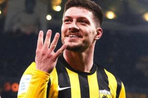 體育資訊01月20日訊 希臘超級聯(lián)賽第17輪,雅典AEK4-0大勝帕納辛奈科斯,贏得雅典德比。約維奇此役首發(fā)出戰(zhàn)84分鐘,在第15到78分鐘連進(jìn)四球,上演大四喜。