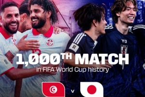 今夏世界杯,日本對決突尼斯將是賽事歷史第1000場比賽