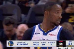 GIF-庫(kù)里替補(bǔ)席給庫(kù)明加鼓掌