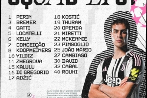 體育資訊1月21日訊 北京時間1月22日凌晨4:00,歐冠聯(lián)賽階段第7輪,尤文圖斯將坐鎮(zhèn)主場迎戰(zhàn)本菲卡。賽前,尤文官方公布本場比賽大名單,伊爾迪茲領(lǐng)銜攻擊線,弗拉霍維奇缺席。