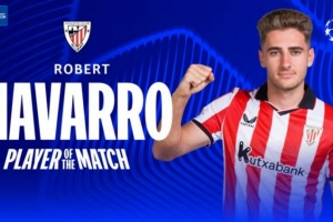 此役羅貝托·納瓦羅為畢爾巴鄂競技踢滿全場,打進1球,助攻2次,他當(dāng)選歐冠官方本場比賽最佳球員。