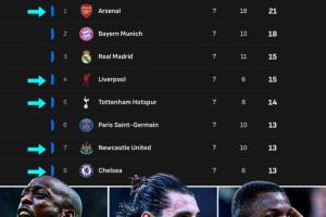 歐冠聯(lián)賽階段還剩最后一輪,積分榜前8名中英超球隊(duì)占據(jù)5席!掌握直通淘汰賽主動(dòng)權(quán)????????????????
