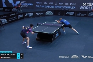 馬斯喀特站男單1/8決賽,向鵬對陣安東·卡爾伯格,向鵬以1-3【5-11、8-11、11-6、7-11】不敵對手無緣8強(qiáng)。