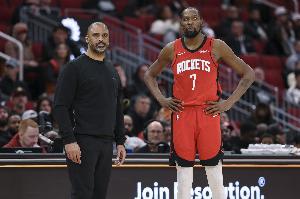 而火箭9個(gè)投籃里5個(gè)是杜蘭特出手,于是火箭本季加時(shí)賽來(lái)到1勝5負(fù)。