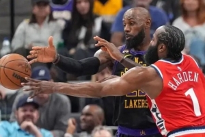 快船這里哈登下去,第四節(jié)一度只能靠喬丹·米勒打,差點(diǎn)被湖人翻。