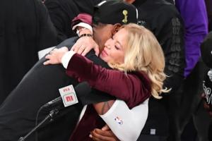 并且,珍妮·巴斯還將自己的INS頭像換成了2020年湖人奪冠后,她與詹姆斯相擁的照片。