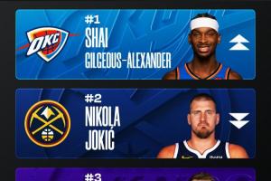 上期榜單:亞歷山大反超約基奇重回第一 賈馬爾·穆雷殺入前十