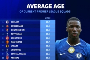 體育資訊1月24日訊 德轉(zhuǎn)列當(dāng)前英超各隊(duì)平均年齡,切爾西23.7歲最小,富勒姆28.9歲最大。