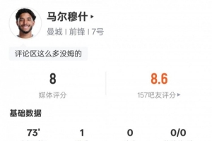 體育資訊1月25日訊 英超第23輪,曼城主場(chǎng)迎戰(zhàn)狼隊(duì)。馬爾穆什首發(fā)出戰(zhàn),貢獻(xiàn)1粒進(jìn)球,送出1次關(guān)鍵傳球,還有1次射中立柱,評(píng)分8.0。