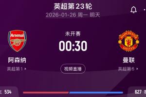 曼聯(lián)暫排第五只落后利物浦1分,此前曼聯(lián)就有多次機會取勝即進前四,但都沒有把握住,不過這輪他們的對手是榜首阿森納。
