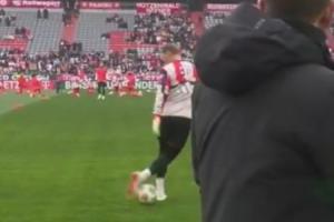 在比賽開始前的熱身環(huán)節(jié),諾伊爾在接長(zhǎng)傳球時(shí)展示了花式停球,將球穩(wěn)穩(wěn)停在地上,一旁正在直播的記者難以置信驚嘆連連。