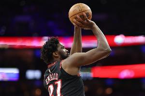 本場比賽,76人球星恩比德表現(xiàn)出色,打了36分鐘21投13中,三分5中3、罰球12中9空砍全場最高38分外加11籃板5助攻1蓋帽,有4失誤,正負值-3。