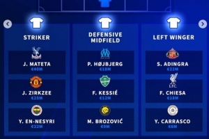 中鋒:馬特塔(水晶宮)、齊爾克澤(曼聯(lián))、恩內(nèi)斯里(費(fèi)內(nèi)巴切)