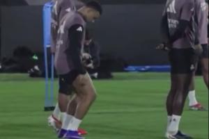 賽前的一段訓(xùn)練視頻中可以看到,姆巴佩在訓(xùn)練時(shí)謹(jǐn)慎地彎腿測(cè)試自己的膝蓋情況,可以看出,他尚未恢復(fù)到100%的狀態(tài)。