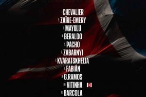 1-舍瓦利耶、2-扎伊爾·埃梅里、3-馬尤盧、4-貝拉爾多、5-帕喬、6-扎巴爾尼、7-克瓦拉茨赫利亞、8-法比安·魯伊斯、9-貢薩洛·拉莫斯、10-維蒂尼亞、11-巴爾科拉