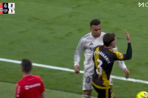 羅德里戈被推倒后,姆巴佩迅速上前為隊(duì)友出頭,與查瓦利亞對(duì)峙。