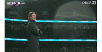 比賽第11分鐘謝爾基為曼城取得進(jìn)球后,轉(zhuǎn)播鏡頭對準(zhǔn)場邊的兩位主帥:弗蘭克怒拍大腿,將手中的水瓶摔在了地上;而另一邊瓜迪奧拉則是揮拳慶祝。