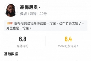 體育資訊2月2日訊 英超第24輪焦點(diǎn)戰(zhàn),曼城客場2-2熱刺。塞梅尼奧首發(fā)出戰(zhàn),打進(jìn)1粒進(jìn)球,6次過人0成功,18次丟失球權(quán)全場最多,評(píng)分6.8。