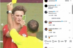 哈維·西蒙斯社媒曬出自己被出示黃牌的照片,以及球員向裁判出示UNO卡牌的梗圖,配文:“UNO說——抽牌(雙關(guān)平局)?!?/p>