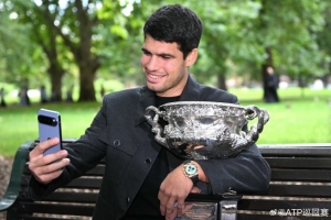 體育資訊2月2日訊 ATP官方曬圖,阿爾卡拉斯拍攝澳網(wǎng)冠軍寫(xiě)真。