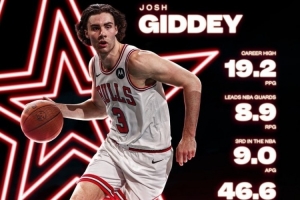 體育資訊1月13日訊 公牛官推今天發(fā)布吉迪場(chǎng)均數(shù)據(jù)海報(bào),為其全明星拉票。