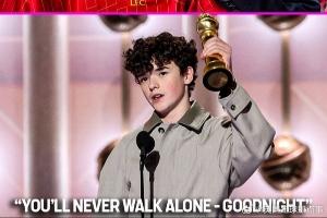 利物浦球迷歐文·庫珀在金球獎獲獎感言環(huán)節(jié)用隊歌“你永遠不會獨行”結尾??
