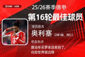 第16輪評(píng)選結(jié)果出爐,拜仁前鋒奧利塞2射1傳,助球隊(duì)8-1狂勝沃爾夫斯堡,奧利塞獲得超過25000名吧友的支持,當(dāng)選【體育資訊X小紅書德甲第16輪最佳球員】!