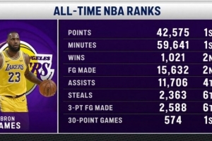 湖人主場迎戰(zhàn)雄鹿,轉(zhuǎn)播方曬出詹姆斯各項紀(jì)錄: