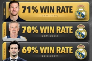 體育資訊1月13日訊 皇馬官宣阿隆索下課,阿隆索在白衣軍團(tuán)的執(zhí)教生涯僅225天。據(jù)Score90數(shù)據(jù)統(tǒng)計(jì),皇馬近五任主教練中,阿隆索以71%的勝率排名榜首,安帥70%次之。