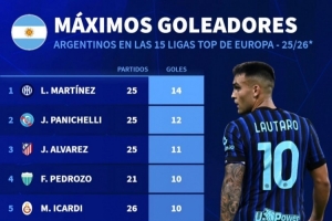 本賽季歐洲聯(lián)賽阿根廷球員射手榜(歐洲前15聯(lián)賽):