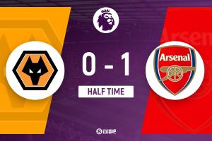 半場結(jié)束,阿森納暫1-0狼隊。