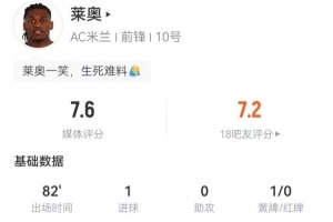 體育資訊2月19日訊 米蘭在本輪意甲對陣科莫,萊奧本場數據如下: