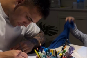 體育資訊2月20日訊 不久前,勞塔羅的妻子在社交媒體上曬出了勞塔羅與孩子畫畫的視頻。