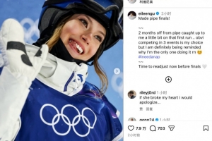 賽后谷愛凌更新了ins,曬出自己的比賽照并配文寫道: