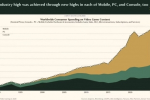 體育資訊2月20日訊 Epyllion 公司的 Matthew Ball 發(fā)布《2026 年視頻游戲現(xiàn)狀報(bào)告》,稱(chēng) 2025 年全球游戲內(nèi)容銷(xiāo)售額達(dá)1956 億美元(注:現(xiàn)匯率約合 1.35 萬(wàn)億元人民幣),同比增長(zhǎng) 5.3%,不過(guò)私人投資卻暴跌 55%。