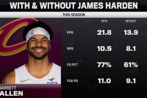 加盟后:場均21.8分10.5籃板,投籃命中率77%,場均出手11.0次