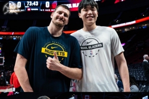 賽前,楊瀚森和約基奇進行交流還合影;掘金官方發(fā)圖道:“我們期待已久的會面終于到來??。”
