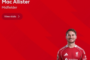 本場(chǎng)比賽麥卡利斯特在補(bǔ)時(shí)階段貢獻(xiàn)讀秒絕殺,賽后他也當(dāng)選英超官方球迷票選全場(chǎng)最佳球員。