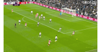 前場右側(cè)薩卡盤帶后到了底線倒三角回傳,埃澤把球停起來直接凌空抽射破門!