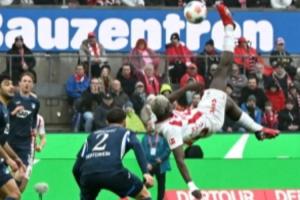 比賽開場15分鐘,科隆前鋒阿赫接到馬拉的傳中,在禁區(qū)內(nèi)上演了一記非常精彩的倒掛金鉤破門,凌空的動作非常舒展!