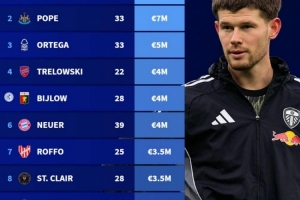體育資訊2月23日訊 德轉(zhuǎn)列今夏合同到期十大門將身價(jià),梅斯利耶1200萬歐居首。