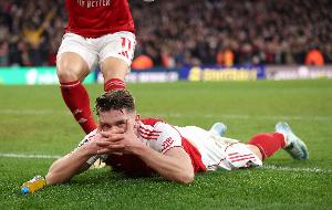 就在阿森納被狼隊(duì)2-2逼平四天后,約克雷斯和埃澤各入兩球,幫助球隊(duì)4-1大勝熱刺。在狼隊(duì)丟分引發(fā)了外界對(duì)阿森納爭(zhēng)冠心態(tài)的質(zhì)疑,然而,他們?cè)趯?duì)陣熱刺時(shí)的表現(xiàn)在某種程度上讓?xiě)岩烧甙察o了下來(lái)。