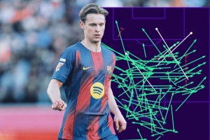 體育資訊2月24日訊 西甲第25輪比賽,巴薩在諾坎普以3-0的比分完勝萊萬特。本場比賽,弗蘭基·德容首發(fā)出戰(zhàn)表現(xiàn)搶眼。