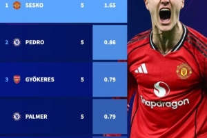 體育資訊2月24日訊 英超第27輪比賽,曼聯(lián)在客場(chǎng)以1-0的比分小勝埃弗頓,舍什科打進(jìn)全場(chǎng)唯一進(jìn)球。進(jìn)入2026年,斯洛文尼亞前鋒已在英超中打進(jìn)5球。