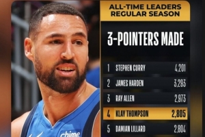 克萊的生涯三分球命中數(shù)超越利拉德,上升至NBA歷史第四位;今天,庫(kù)里轉(zhuǎn)發(fā)評(píng)論道:“耶,殺手!”