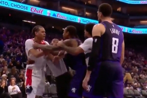 GIF-凱肖恩·喬治和德羅贊推搡發(fā)生沖突