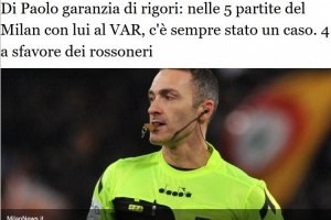 意媒:VAR裁判迪保羅本賽季5次執(zhí)法米蘭,吹3個點球給對手全沒進