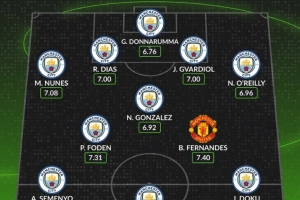 體育資訊1月17日訊 本輪英超曼市德比即將打響,數(shù)據(jù)網(wǎng)站W(wǎng)hoscored也盤點(diǎn)了兩支球隊(duì)本賽季英超場均評分最高陣容,其中曼城10人入選,具體如下: