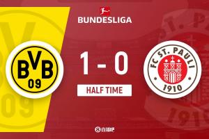 體育資訊1月17日訊 北京時(shí)間1月17日22:30,德甲第18輪,多特蒙德坐鎮(zhèn)伊杜納信號(hào)公園球場(chǎng)迎戰(zhàn)圣保利。上半場(chǎng),布蘭特射門(mén)被瓦爾門(mén)線解圍,施洛特貝克、阿德耶米犯規(guī)染黃,補(bǔ)時(shí)階段,布蘭特破門(mén)打破場(chǎng)上僵局。半場(chǎng)戰(zhàn)罷,多特蒙德暫1-0圣保利!
